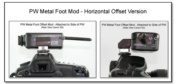 The foam pad is included and attached to each bracket and the Flash Angle Adjustment Screws are an option that adds $10 to the base cost of the bracket. This item is available now, and is truly a working prototype item, not a mass produced, injection molded item.