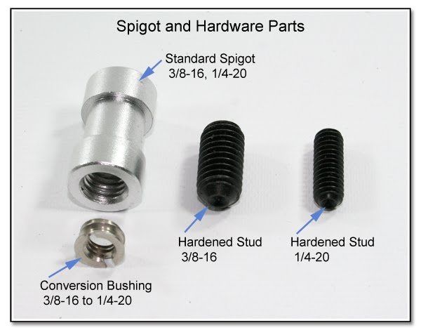 (3/8 and 1/4 inch)) is used to screw the Direct Attached Spigot onto a light stand which ends in a 1/4-20 threaded stud (without needing a separate umbrella adapter).